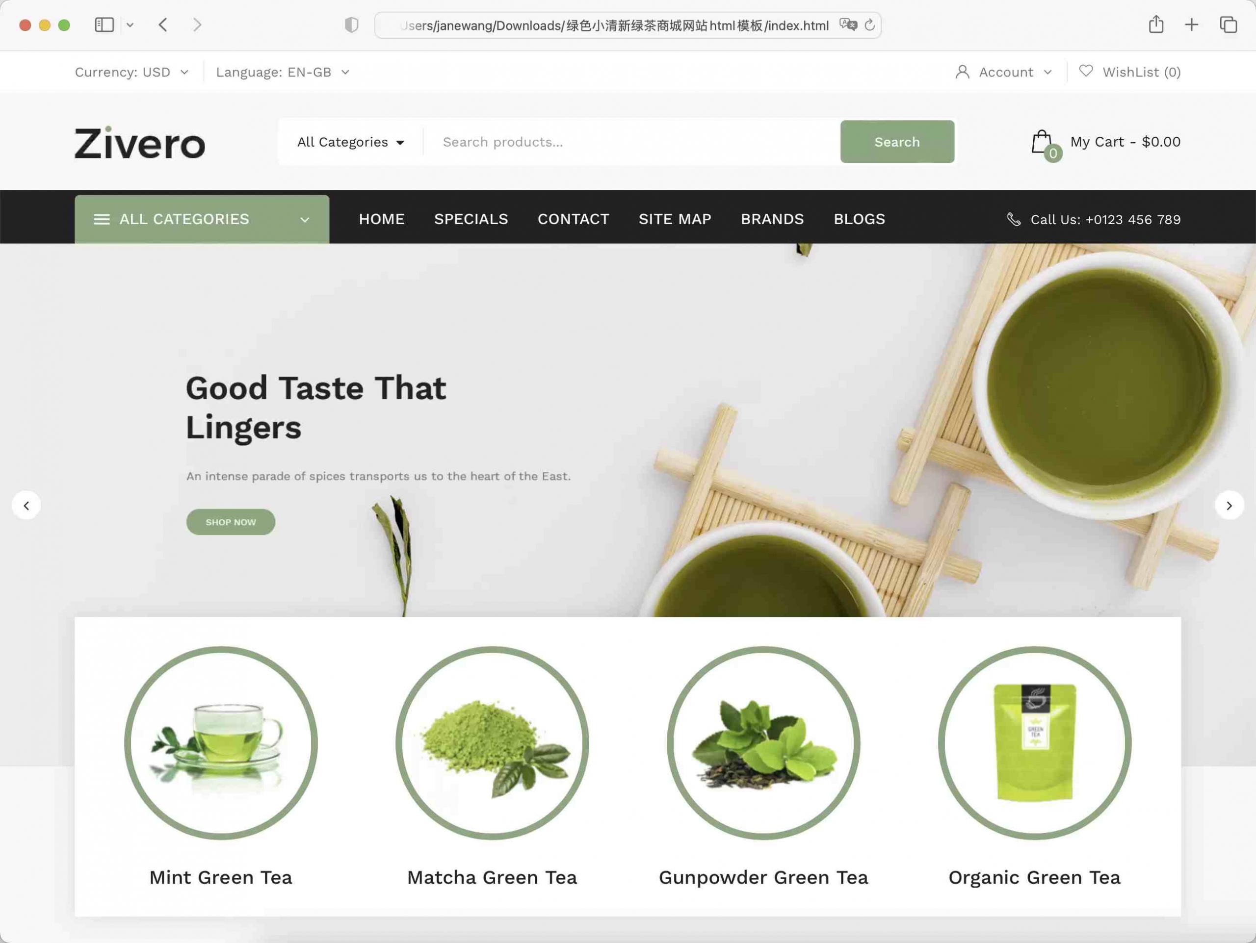 源码秀 » 已测|外贸英文版绿色小清新绿茶商城网站html模板