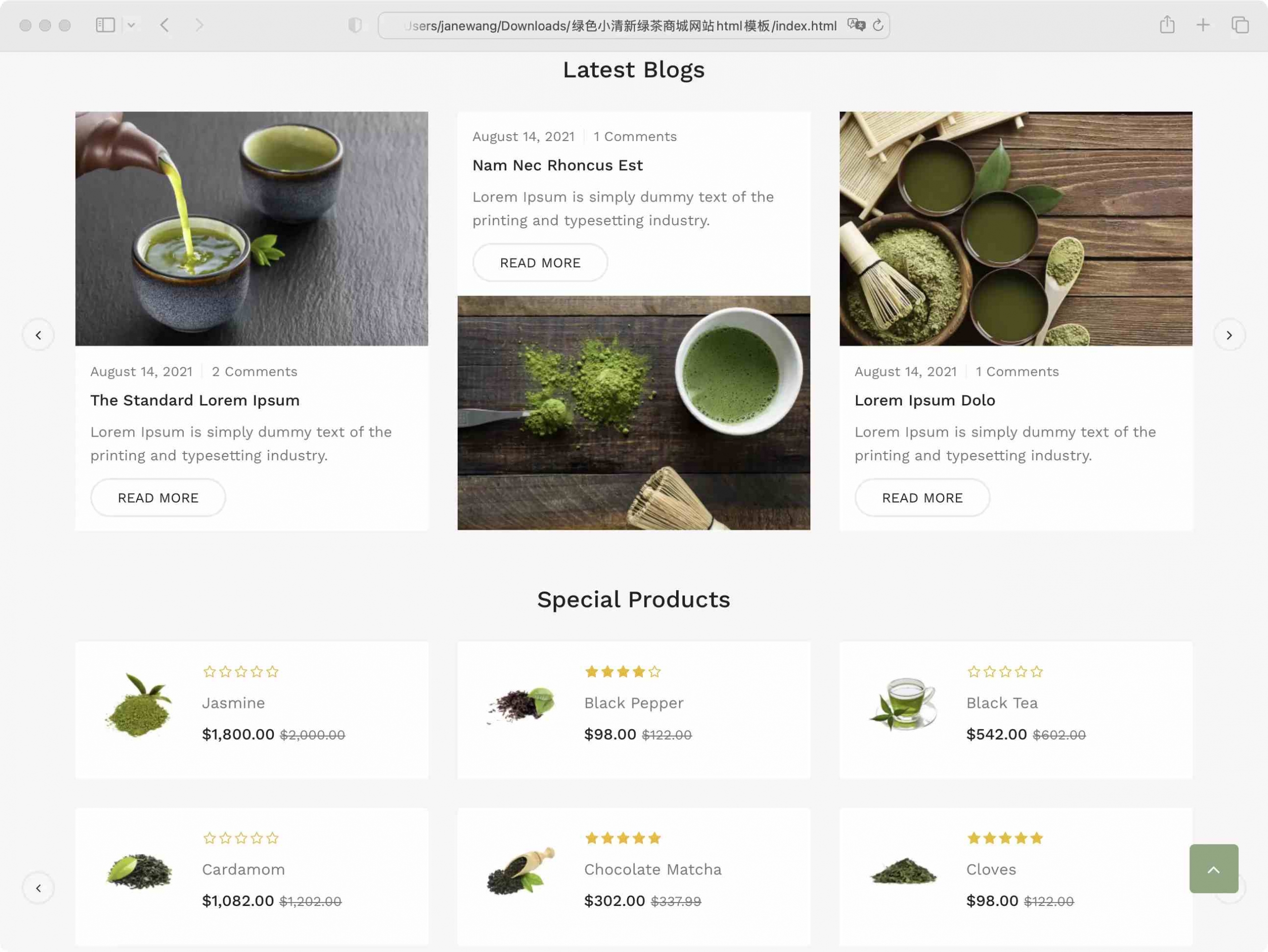 小清新风格的设计在现下十分流行,给人以简洁的观感,整理了一款绿色小清新html绿茶商城网站模板,分享给大家 可用于绿茶、绿茶粉、茶叶等商家营销网站,200个html文件自定义编辑,满足您建站所需。