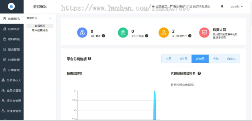 注意:市场上的低版本后台没有“技师统计”菜单、可视化数据平台,订单不能退款等,注意区分旧版!