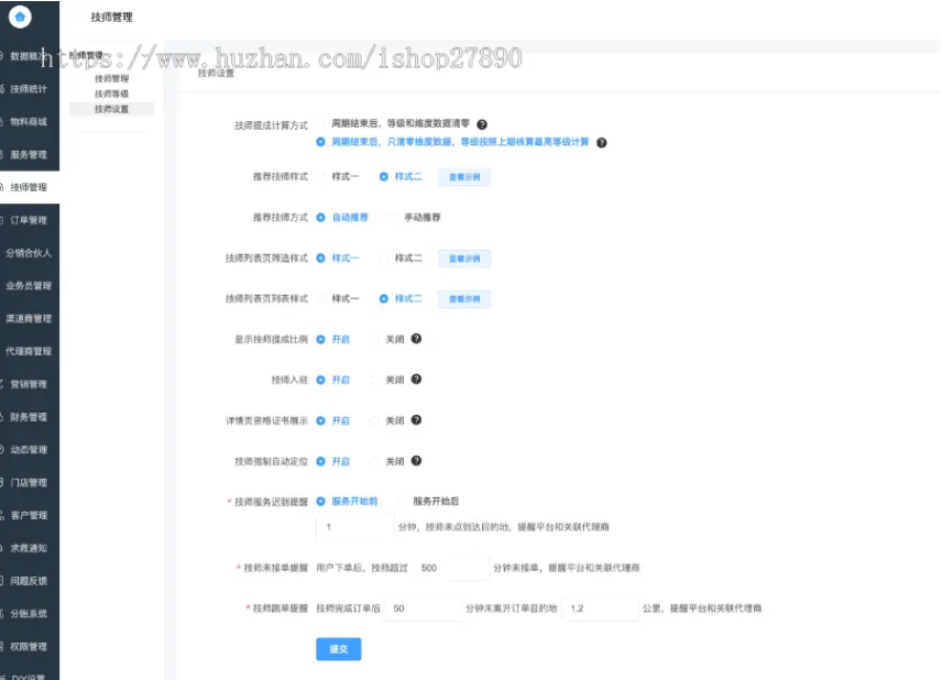 5、平台可以对某个技师单独设置固定比例,代理商单独设置技师比例需要平台审核。